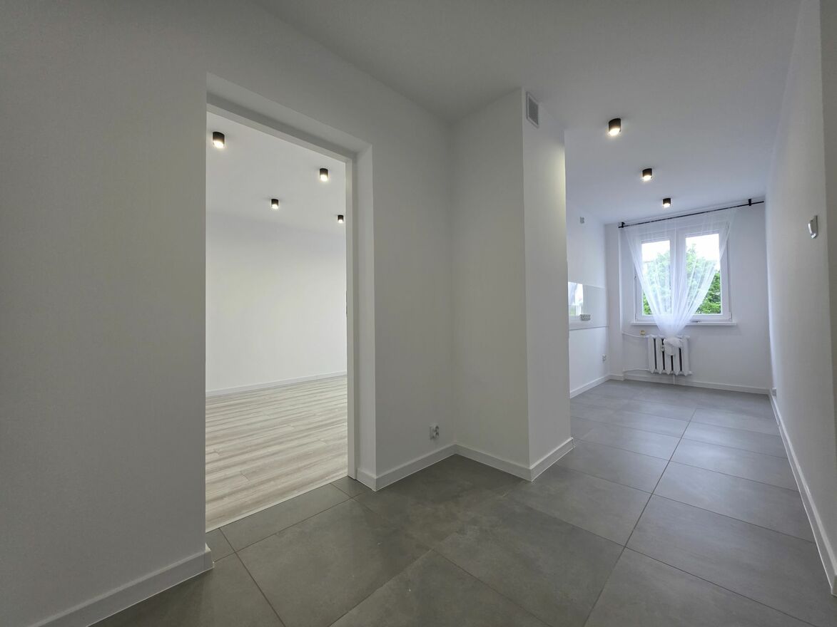 2 pokojowe po generalnym remoncie w Mysłowicach. Mieszkanie znajduje się przy ulicy Katowickiej 71 na pierwszym piętrze w dziesięciopiętrowym bloku.
